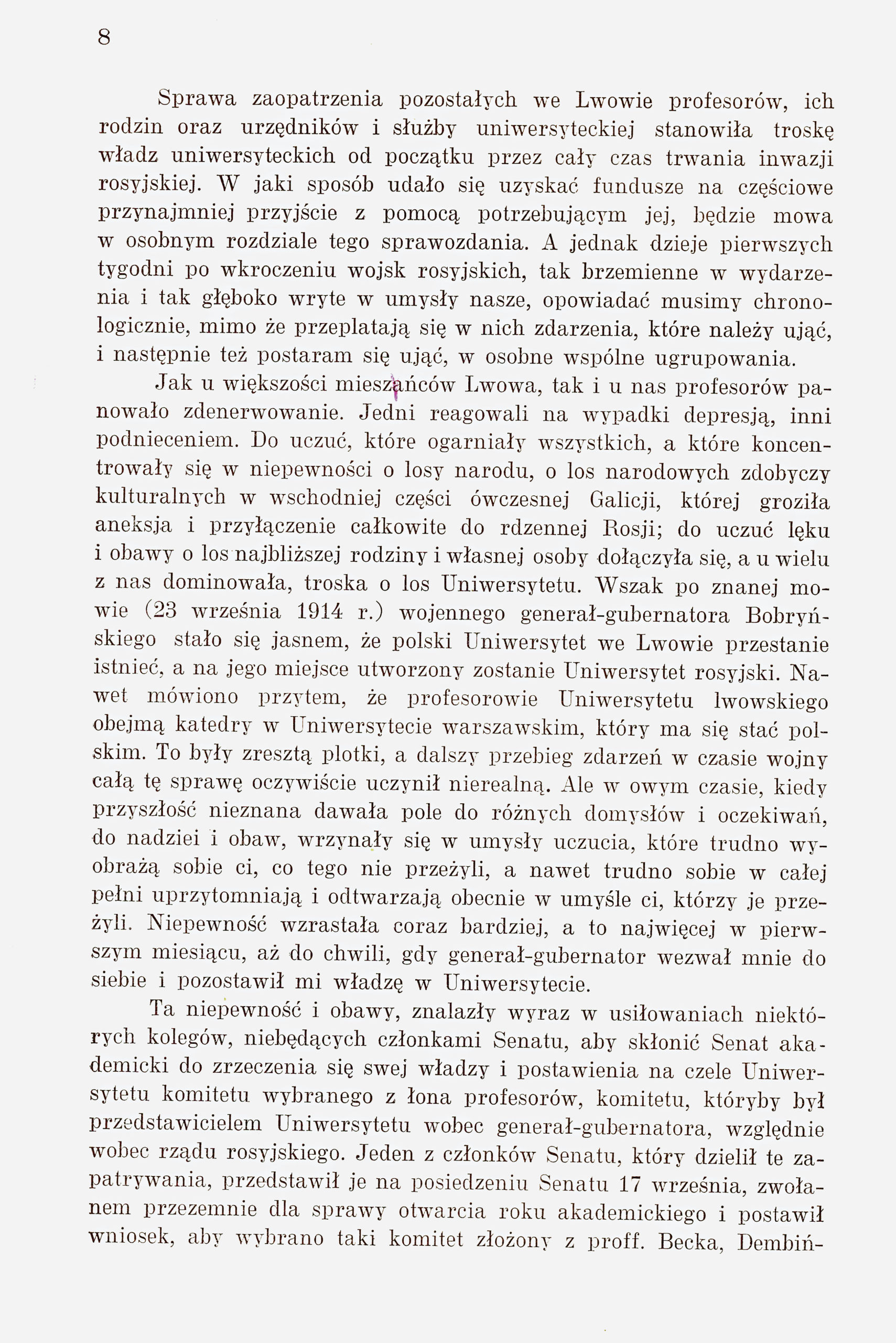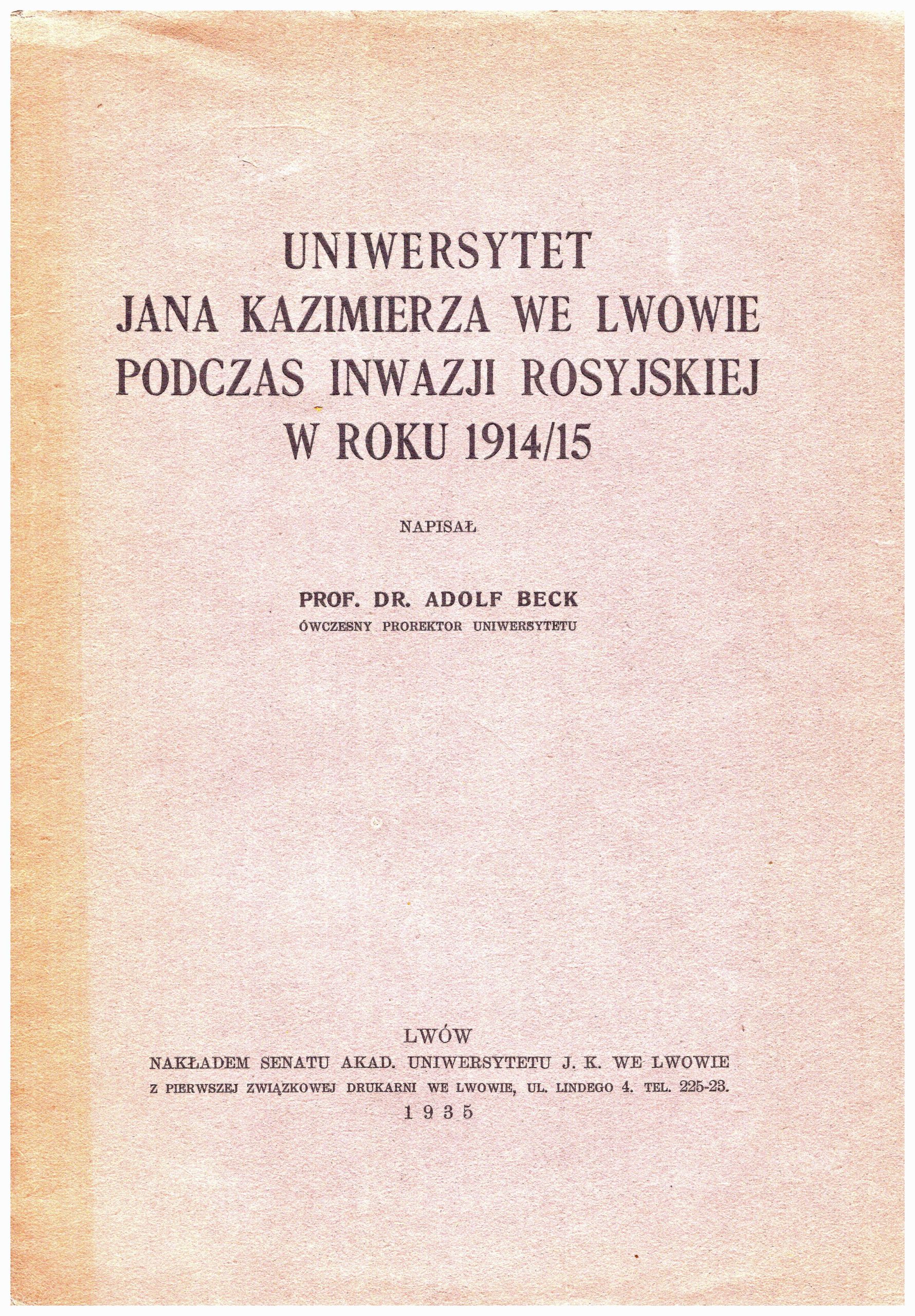 - zapis zdarzeń w trakcie okupacji sporządzony przez prof. Adolfa Becka, p.o. rektora Uniwersytetu Jana Kazimierza we Lwowie /fragmenty opisujące początek i koniec okupacji/.