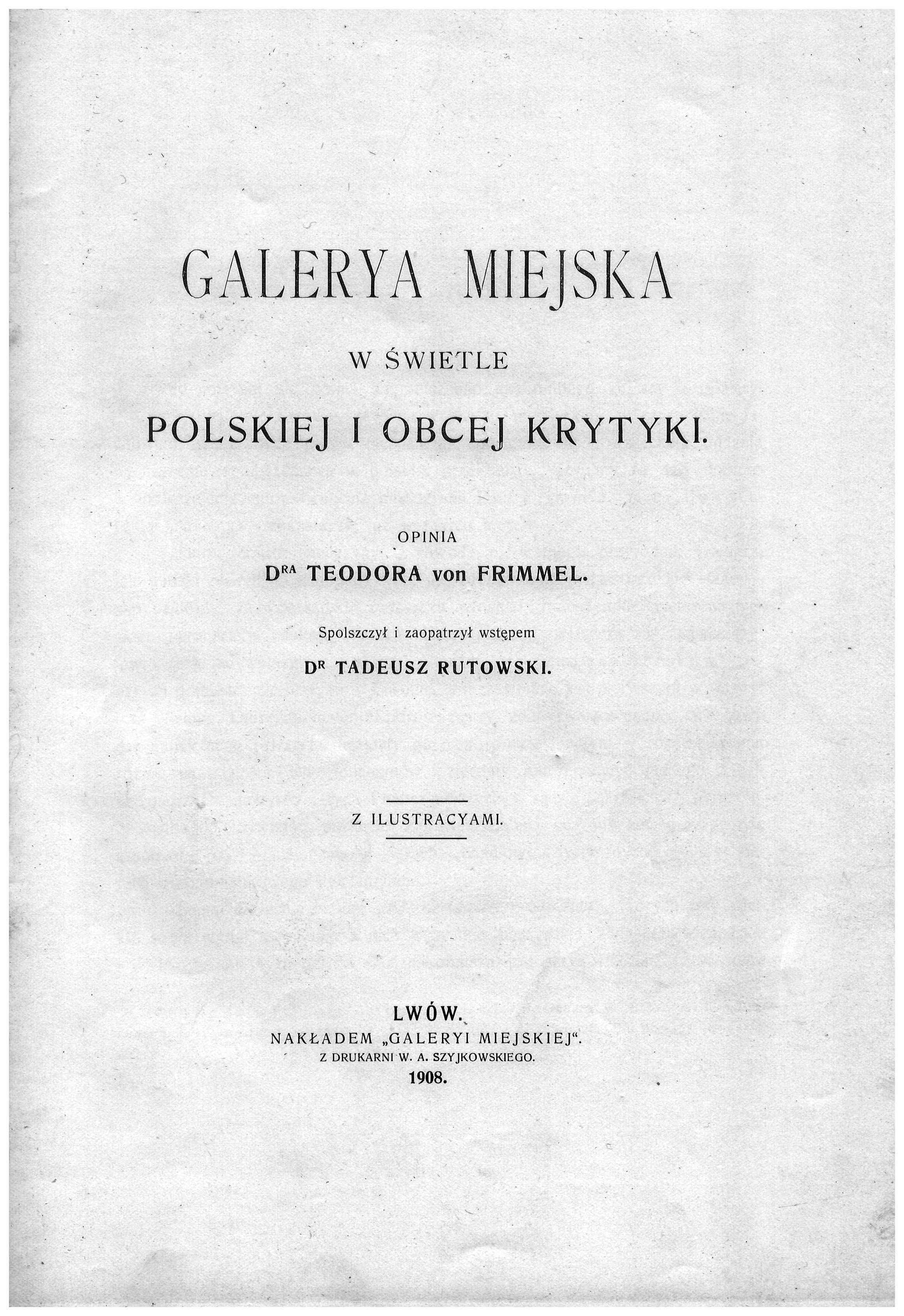 dr T. Rutowski był również autorem opracowania z 1908r odnoszącego się sporów o wartość obrazów gromadzonych w Galeryi Miejskiej.