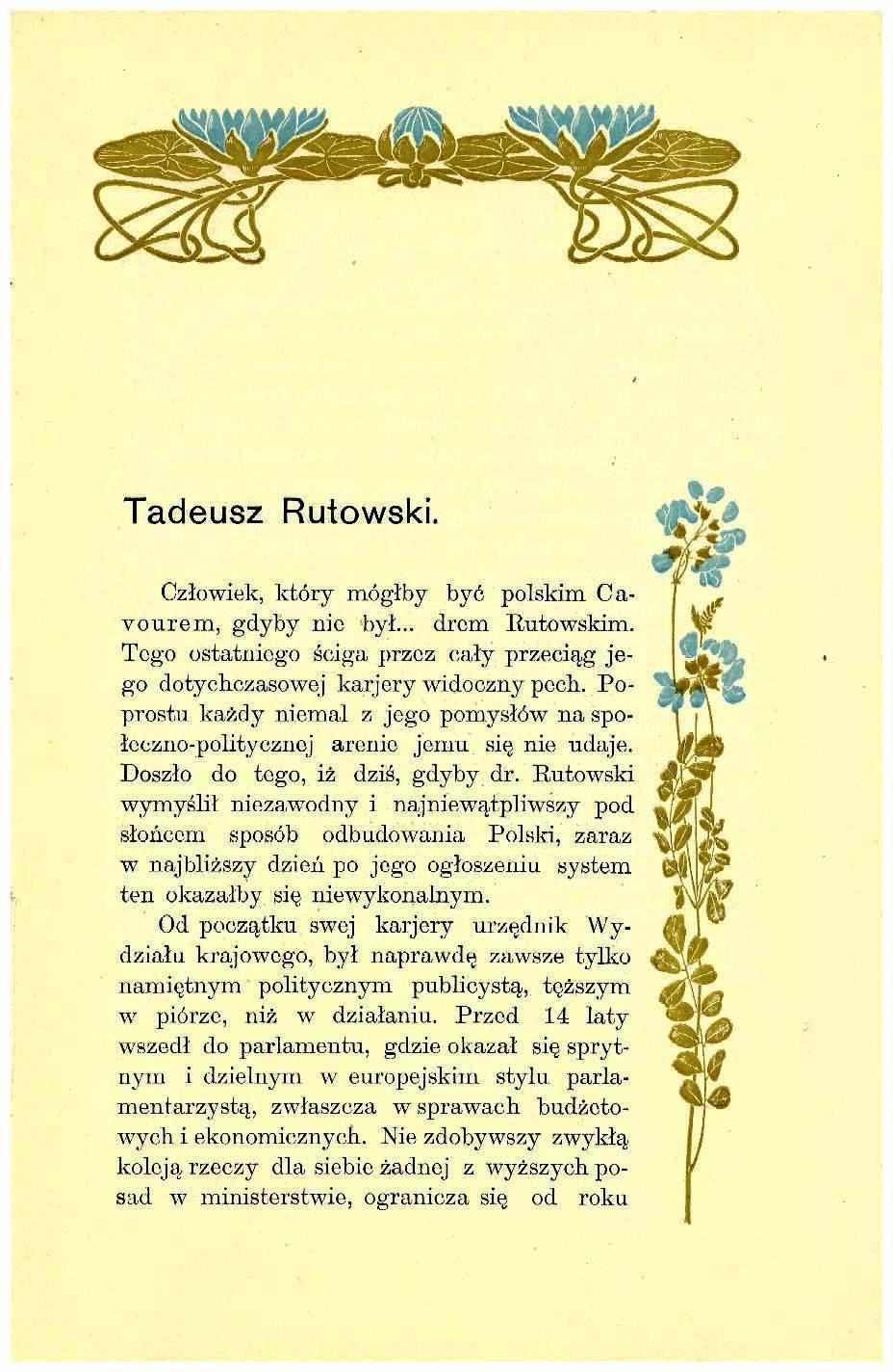 Tadeusz Rutowski dr – radny m. Lwowa kadencji 1902 r, wiceprezydent, a następnie prezydent m. Lwowa.