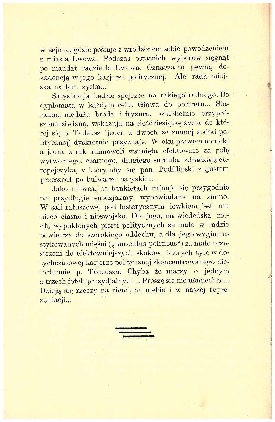Zgodnie ze Wstępem, jest to ” … album 25 sylwetek nowych radnych, z liczby 50, wybranych na kadencję trzechletnią lwowskiej Reprezentacji na rok pański tysiąc dziewięćsetny drugi, trzeci i czwarty.”