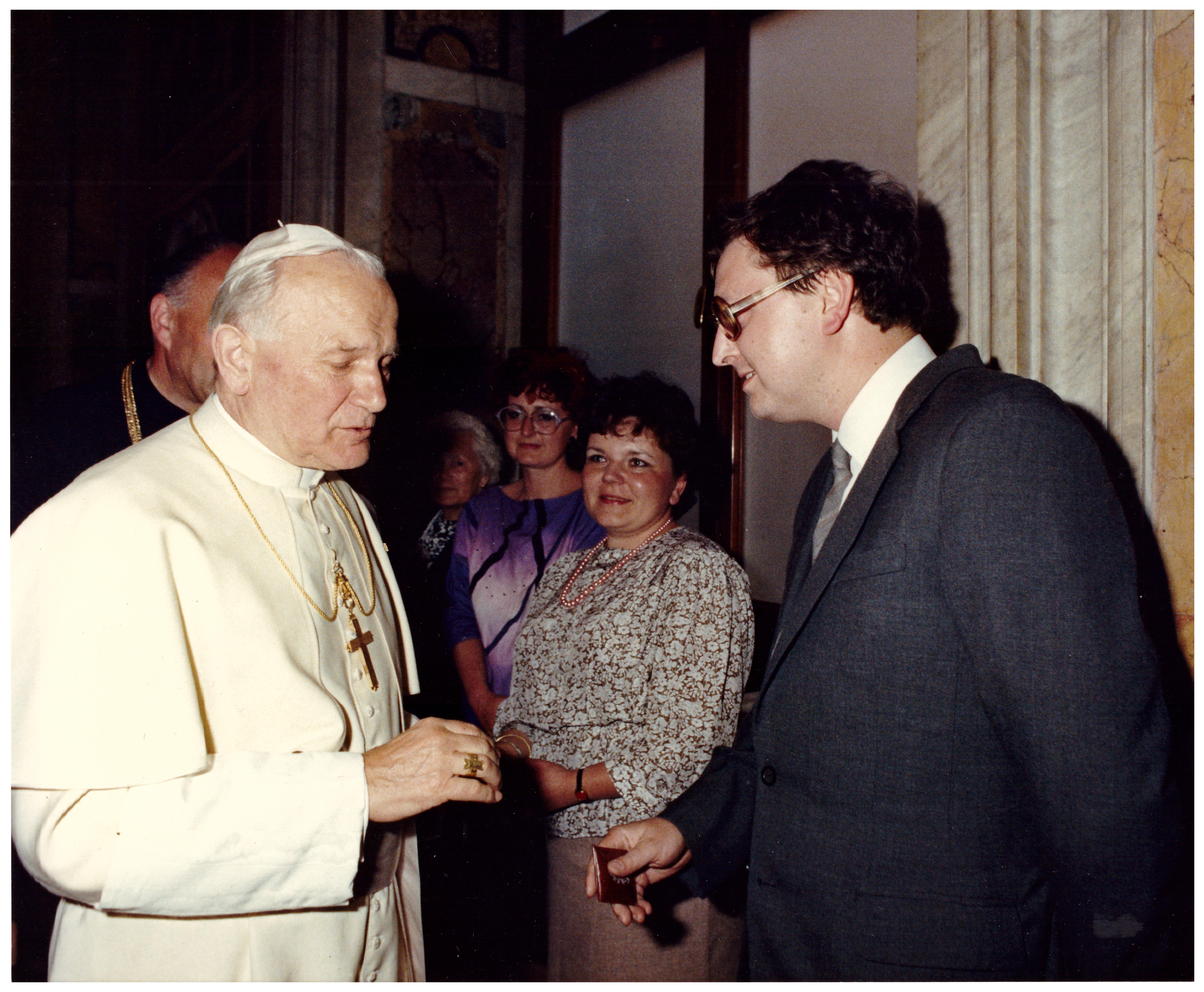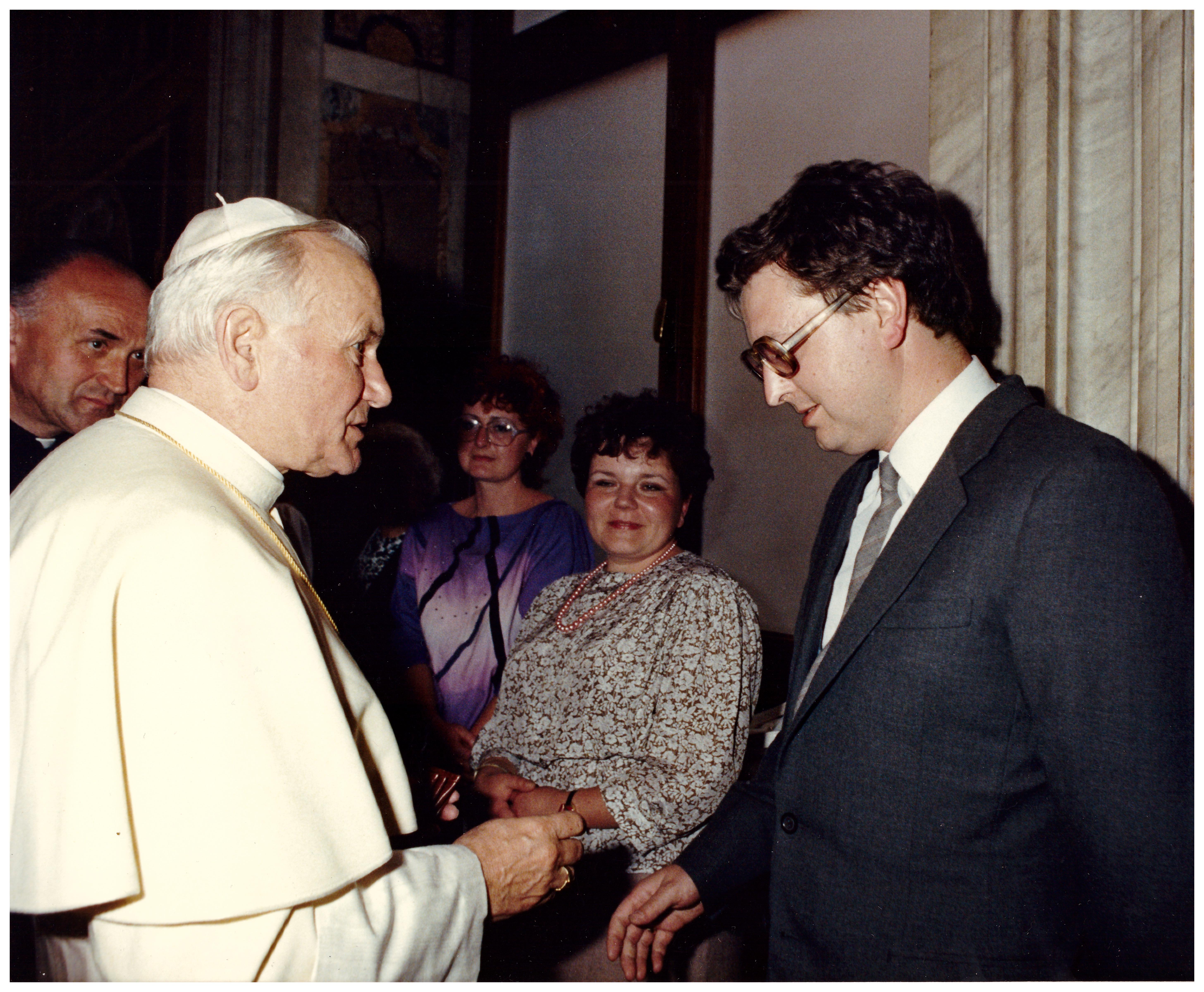 - Watykan, sala klementyńska, 19.04.1988 r Krzysztof Skarbiński i JPII