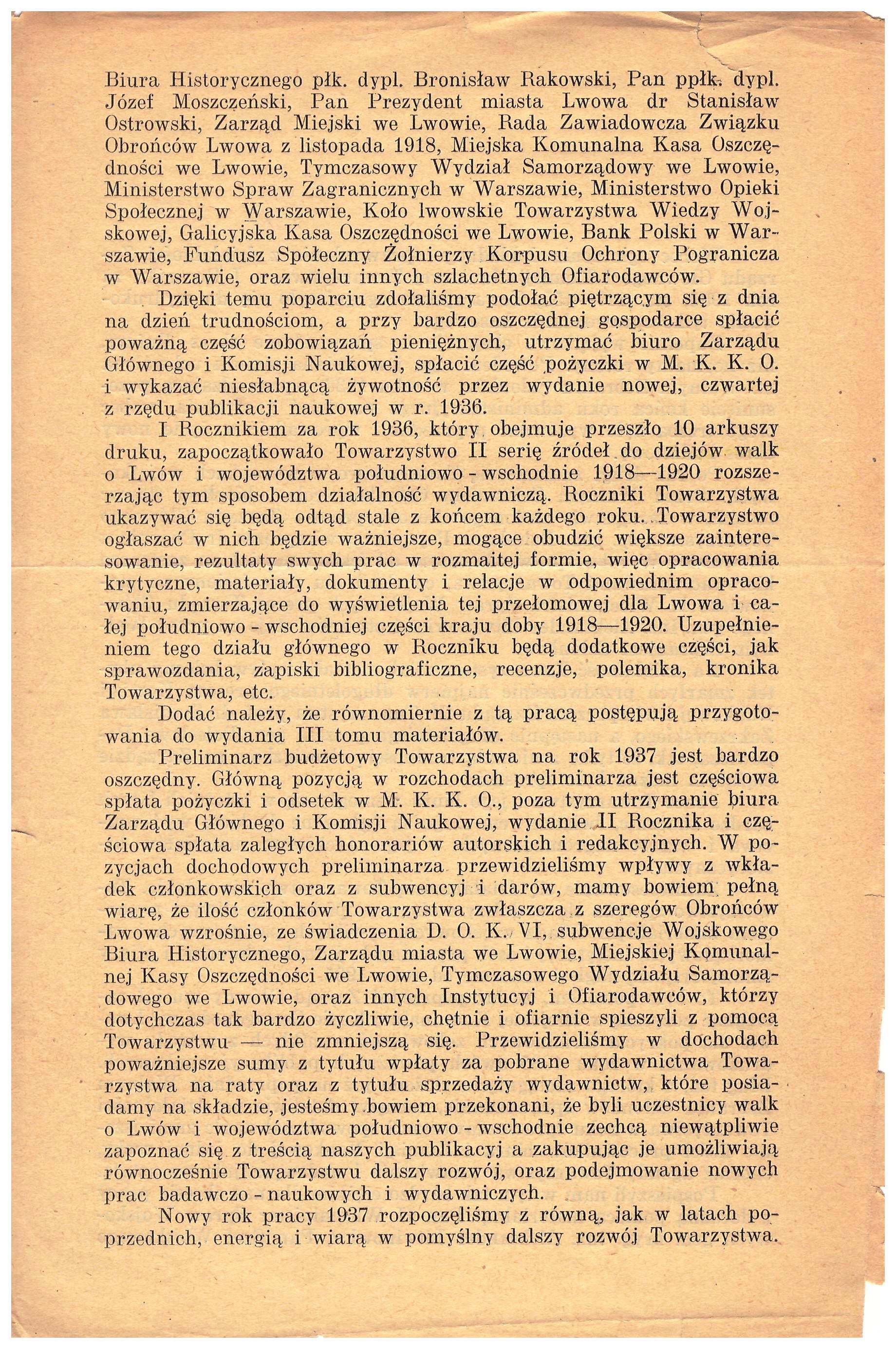 - Tow Badania Historii Obrony Lwowa etc ogólne sprawozdanie str2 1937r
