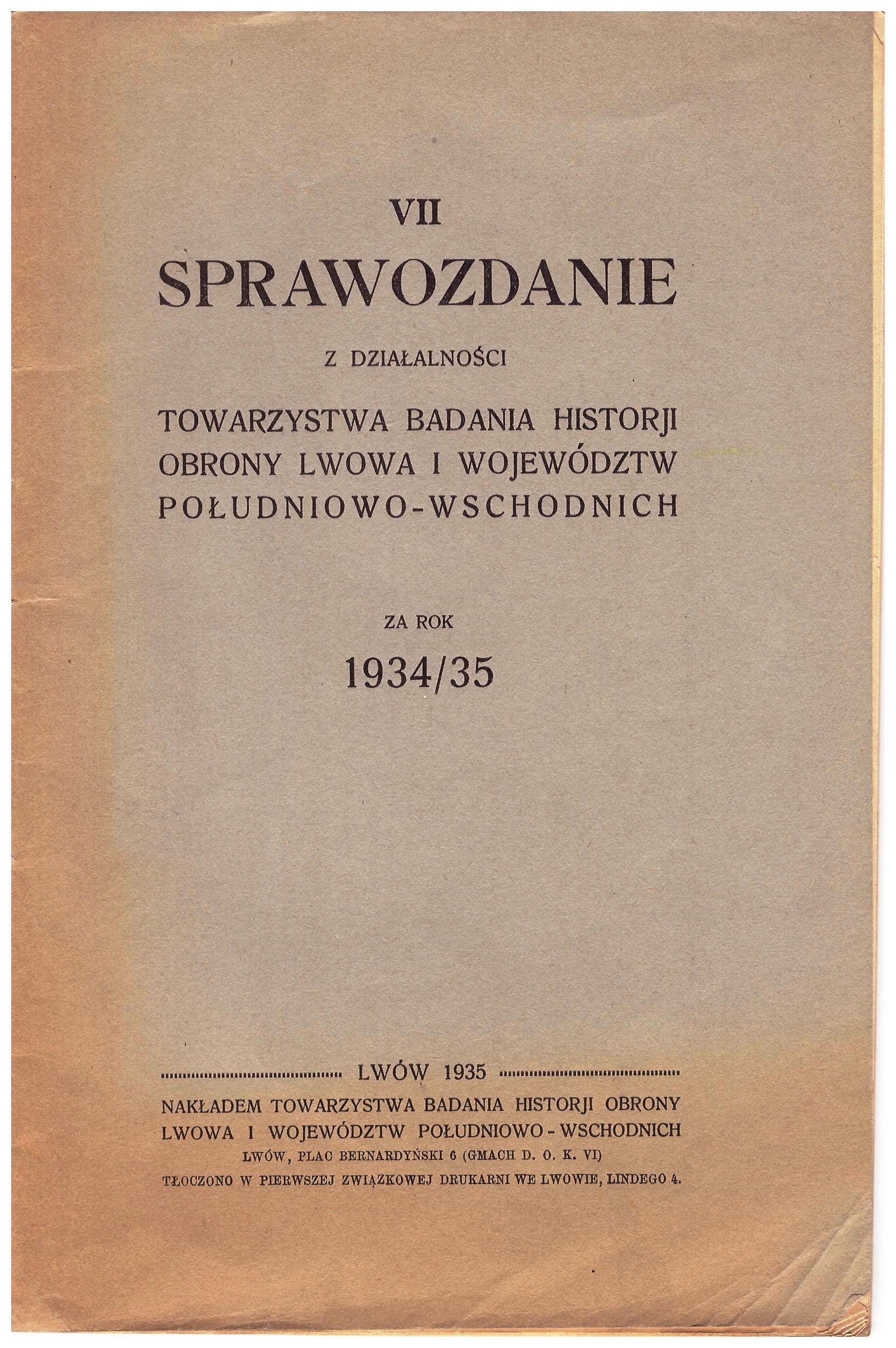 - Tow Badania Historii Obrony Lwowa etc sprawozdanie 1935r