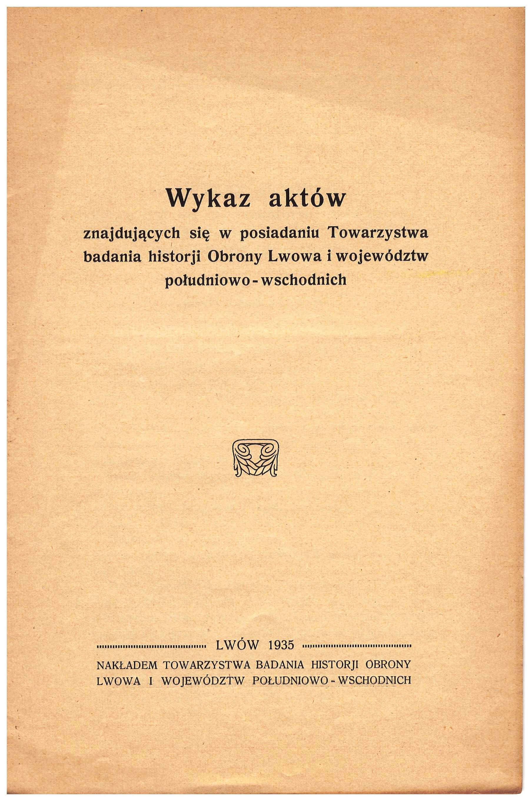 - Tow Badania Historii Obrony Lwowa etc wykaz aktów 1935r