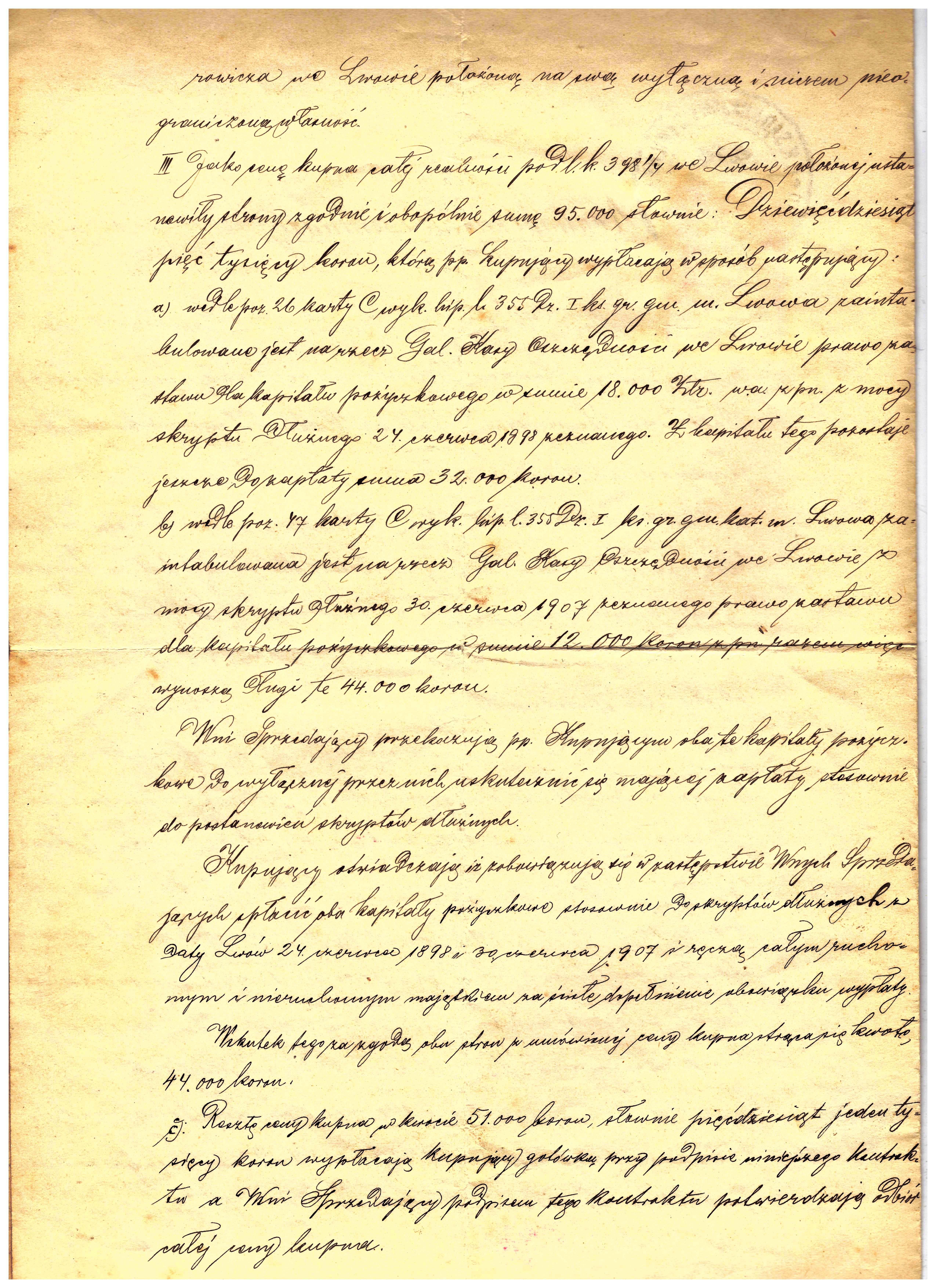 - Lwów 1908r kontrakt kupna i sprzedaży realności K. Legeżyński 3