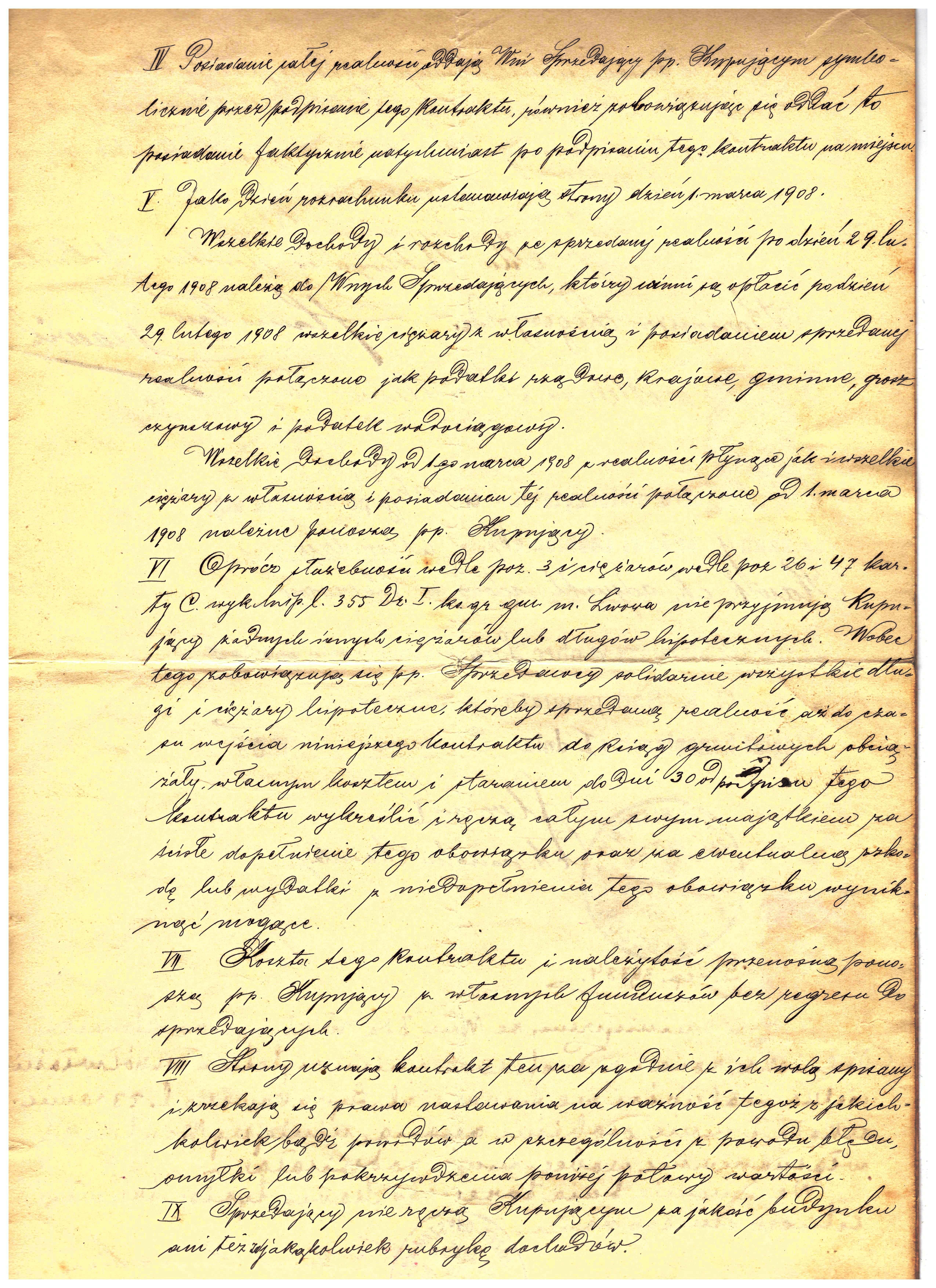 - Lwów 1908r kontrakt kupna i sprzedaży realności K. Legeżyński 5