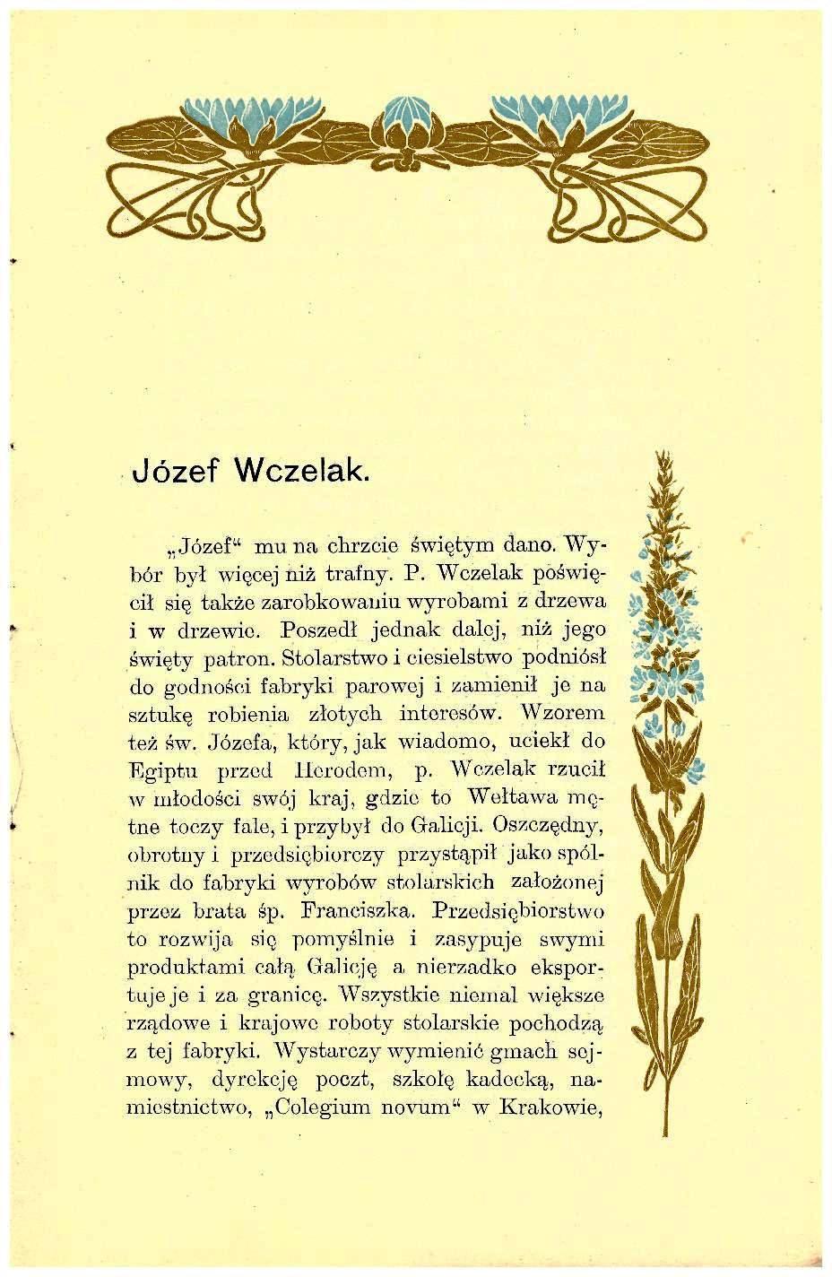 Józef Wczelak, Członek Lwowskiego Towarzystwa Strzeleckiego ok. 1896 r, stolarz, działał jako przedsiębiorca, inżynier cywilny, ur. 1849 r, radny miejski, razem z bratem Franciszkiem otworzyli fabrykę wyrobów stolarskich, wykonali w 1883 r wyposażenie Collegium Novum UJ w Krakowie, we Lwowie: gmach sejmowy, dyrekcja poczt, szkoła kadecka, namiestnikowstwo, nowy teatr lwowski.