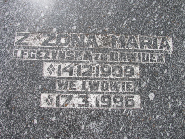 Od 29.09.1942 r mąż Marii z Dawidków LegeżyńskiejOboje pochowani na cmentarzu Lipowym w Gliwicach, grób nr B1 – 9 – 14.