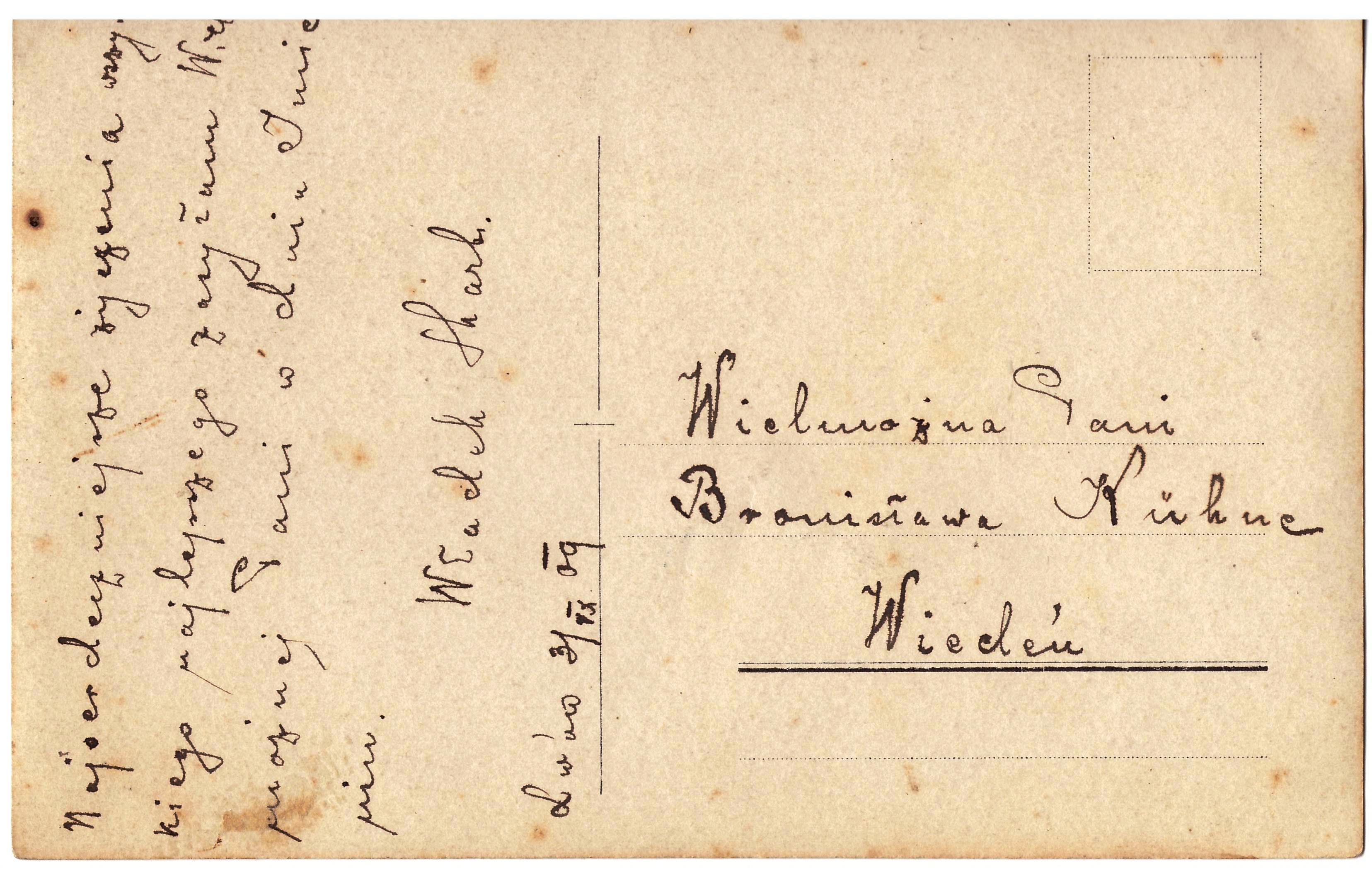- Kuhne Bronisława kartka od Skarbiński Władysław 1909 r