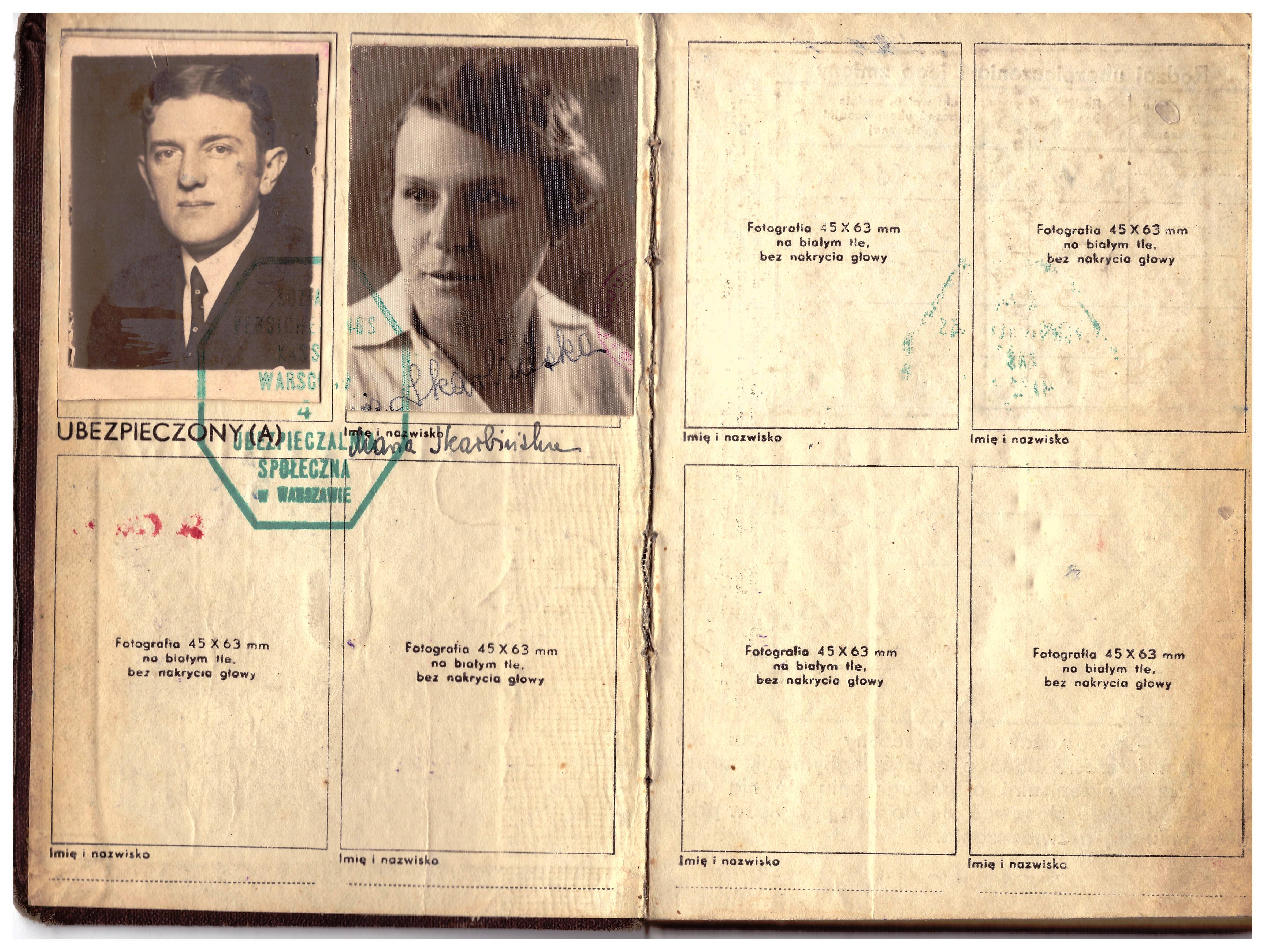 - legitymacja ubezpieczeniowa GG 1940 r Warszawa Władysław i Maria Skarbińscy 2