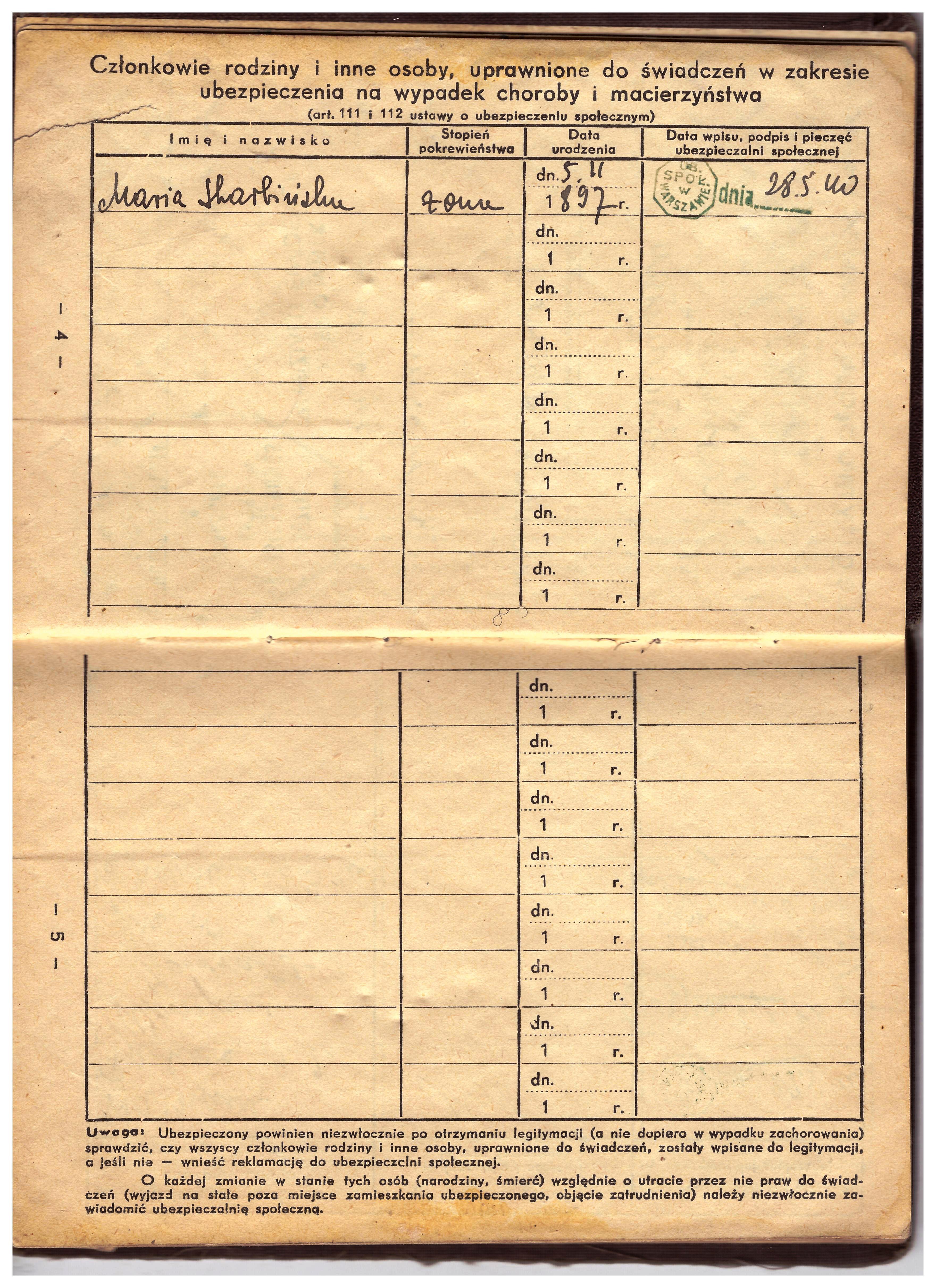 - legitymacja ubezpieczeniowa GG 1940 r Warszawa Władysław i Maria Skarbińscy 7