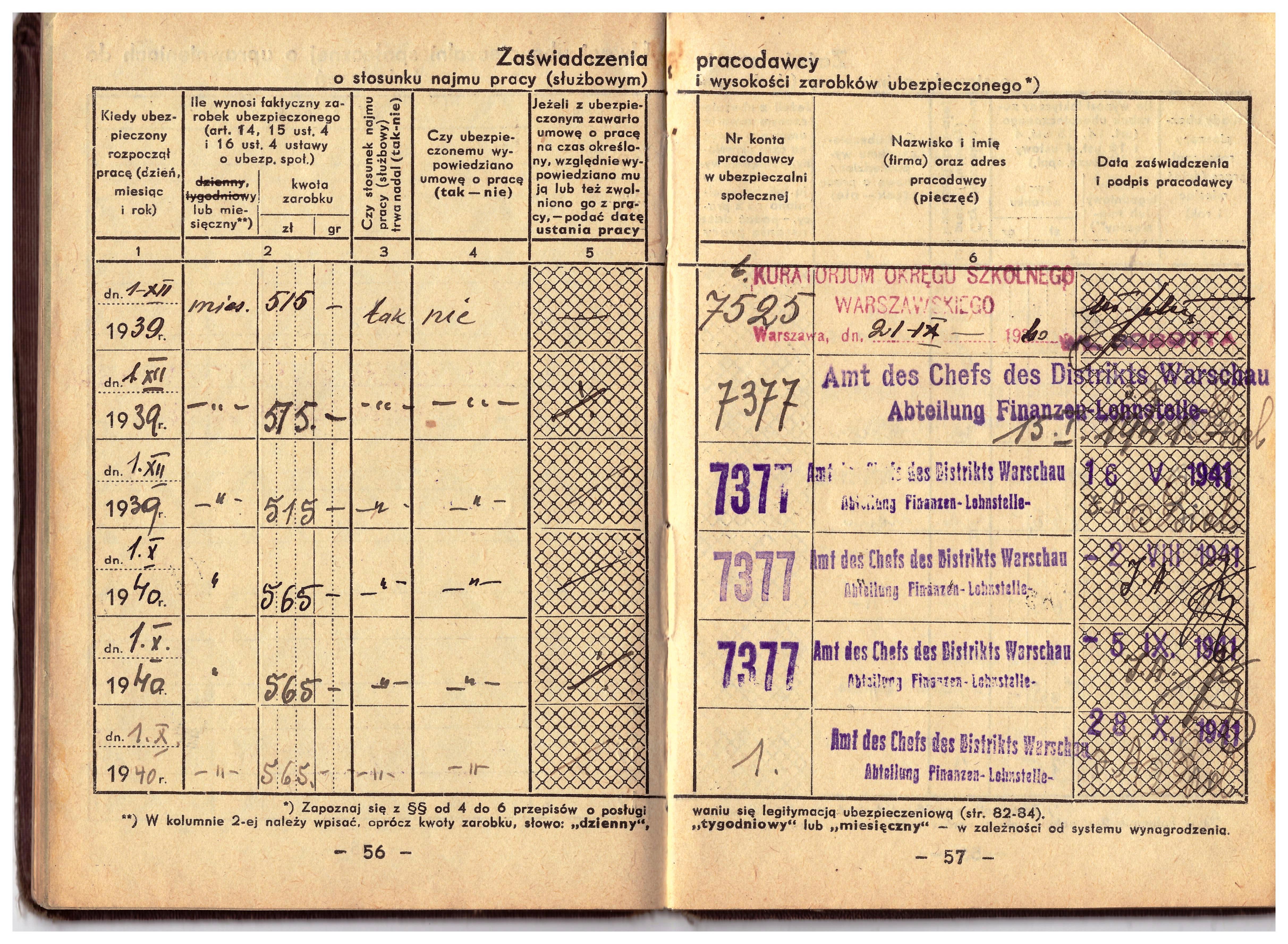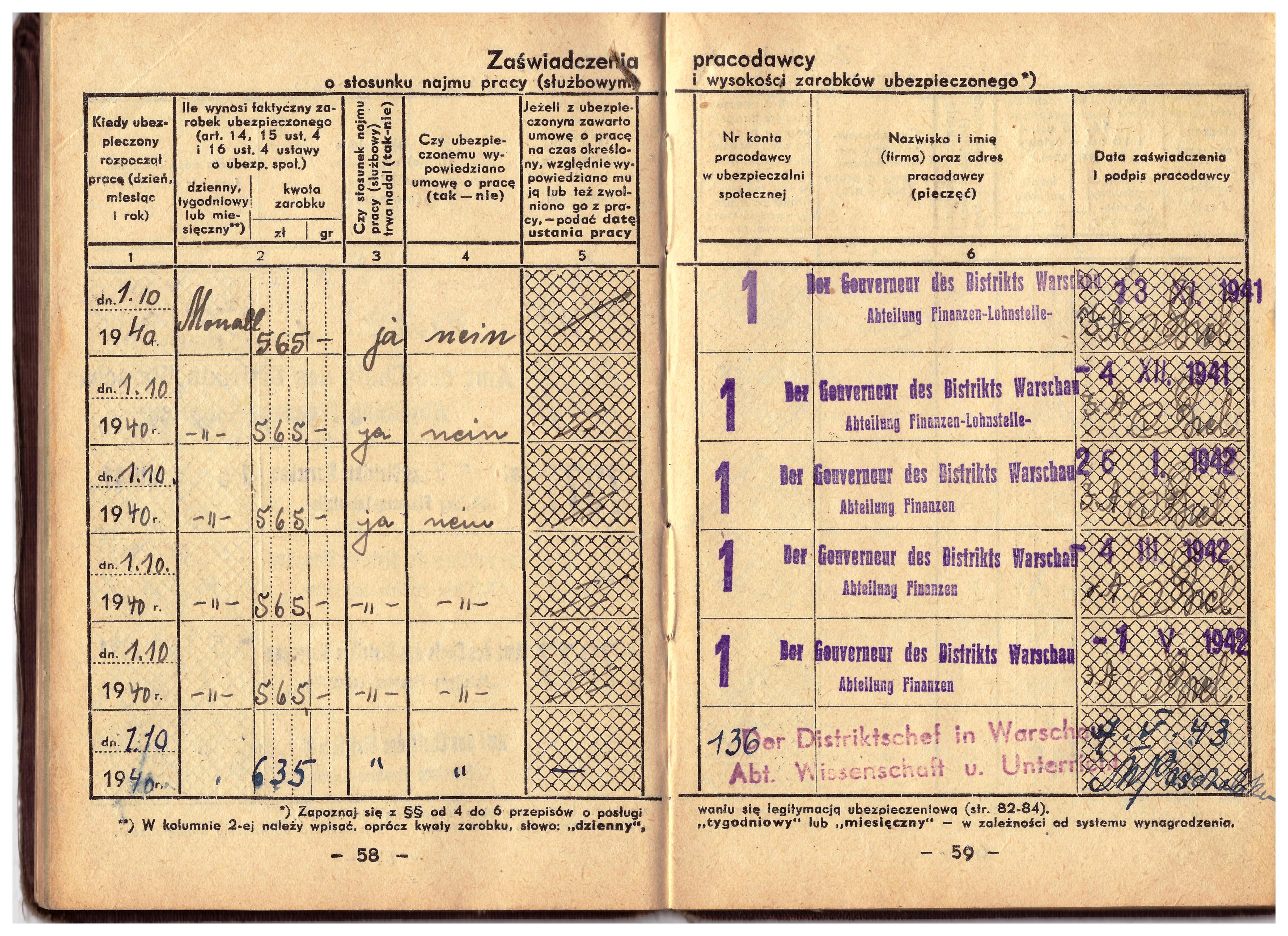 - legitymacja ubezpieczeniowa GG 1940 r Warszawa Władysław i Maria Skarbińscy 6