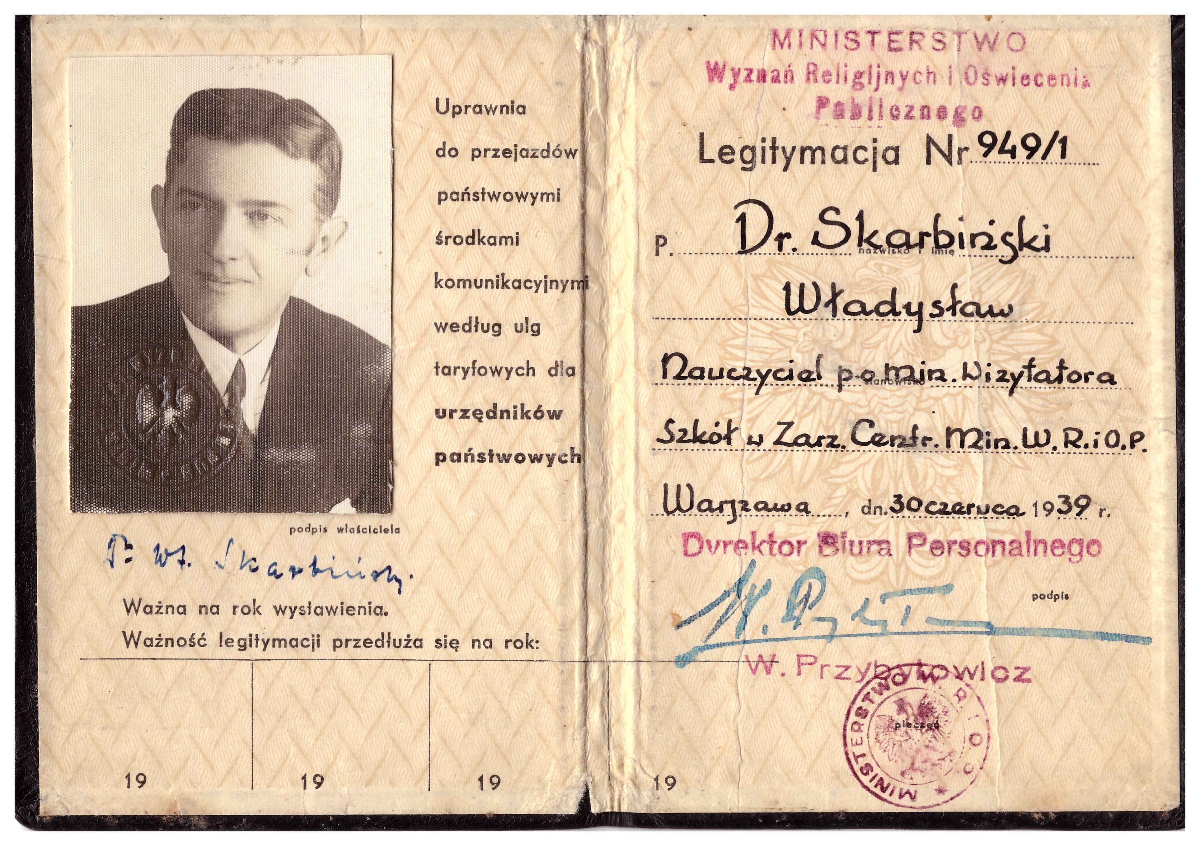 Dr Władysław Skarbiński 1 lutego 1939 r. przeniósł się do Warszawy i pełnił obowiązki ministerialnego wizytatora szkół średnich w Zarządzie Centralnym Ministerstwa Wyznań Religijnych i Oświecenia Publicznego (ob. Ministerstwo Edukacji).