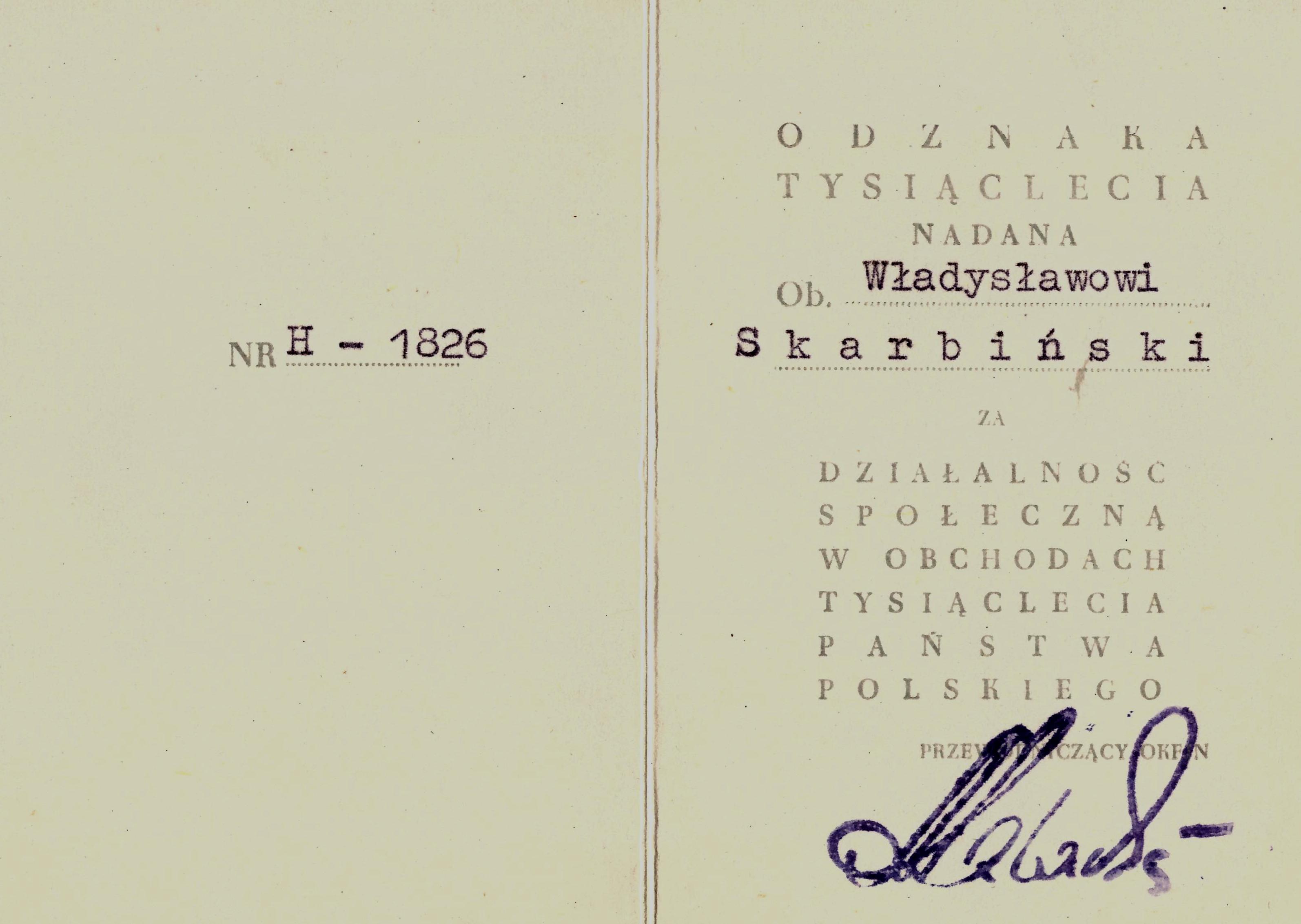 - Odznaka Tysiąclecia FJN Władysław Skarbiński