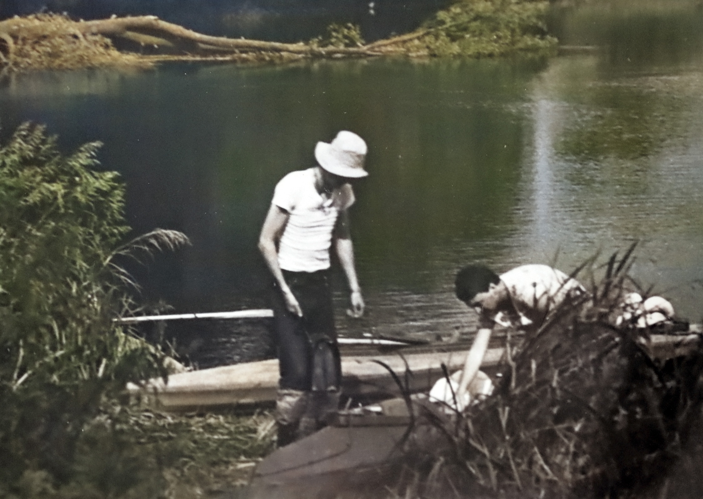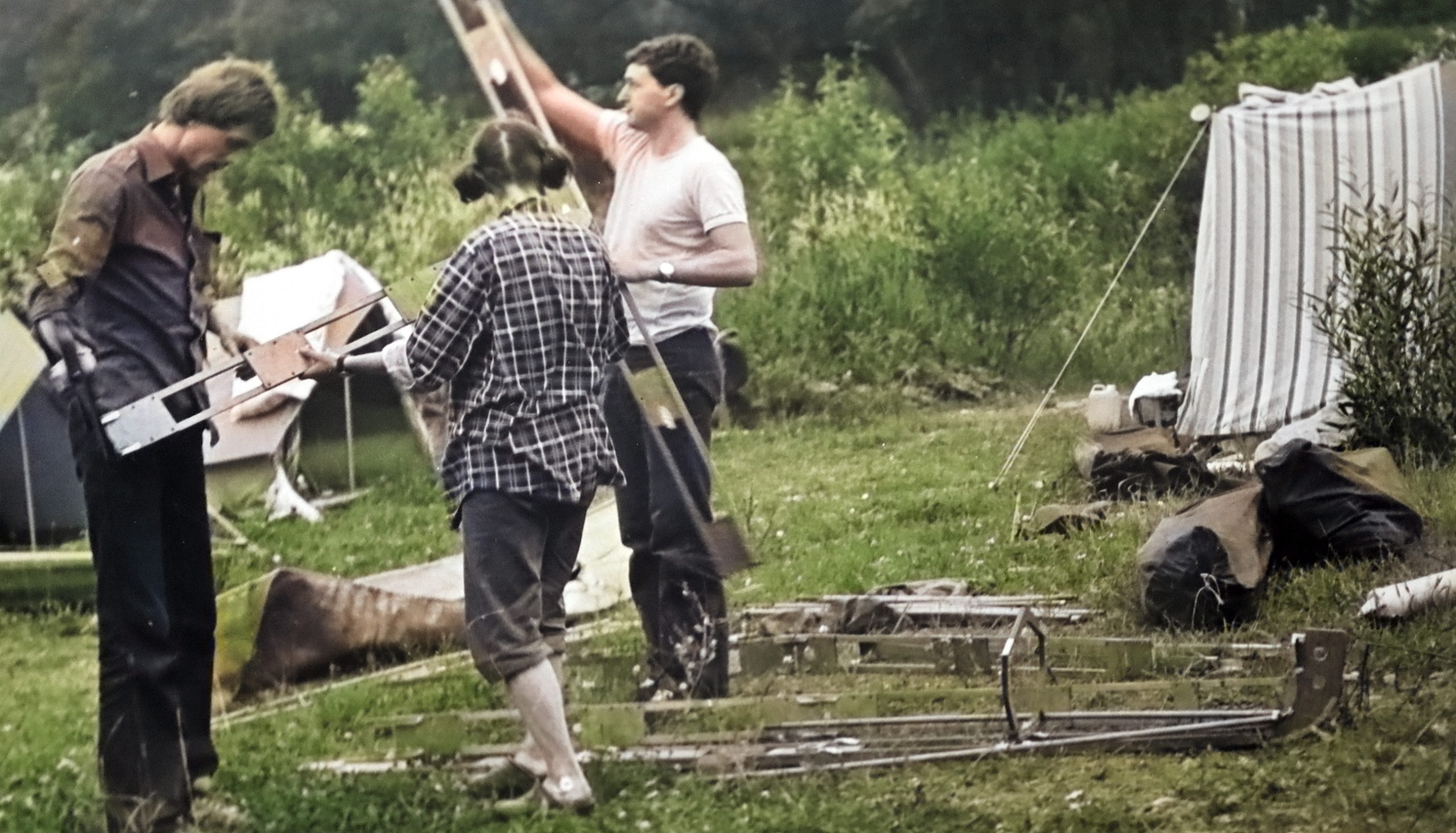 - 1979 spływ Ledą składanie składaka, oprócz Beaty Luchter tyłem, nikt z nas nie widział go na oczy, Henryk Głąb, ja – K. Skarbiński