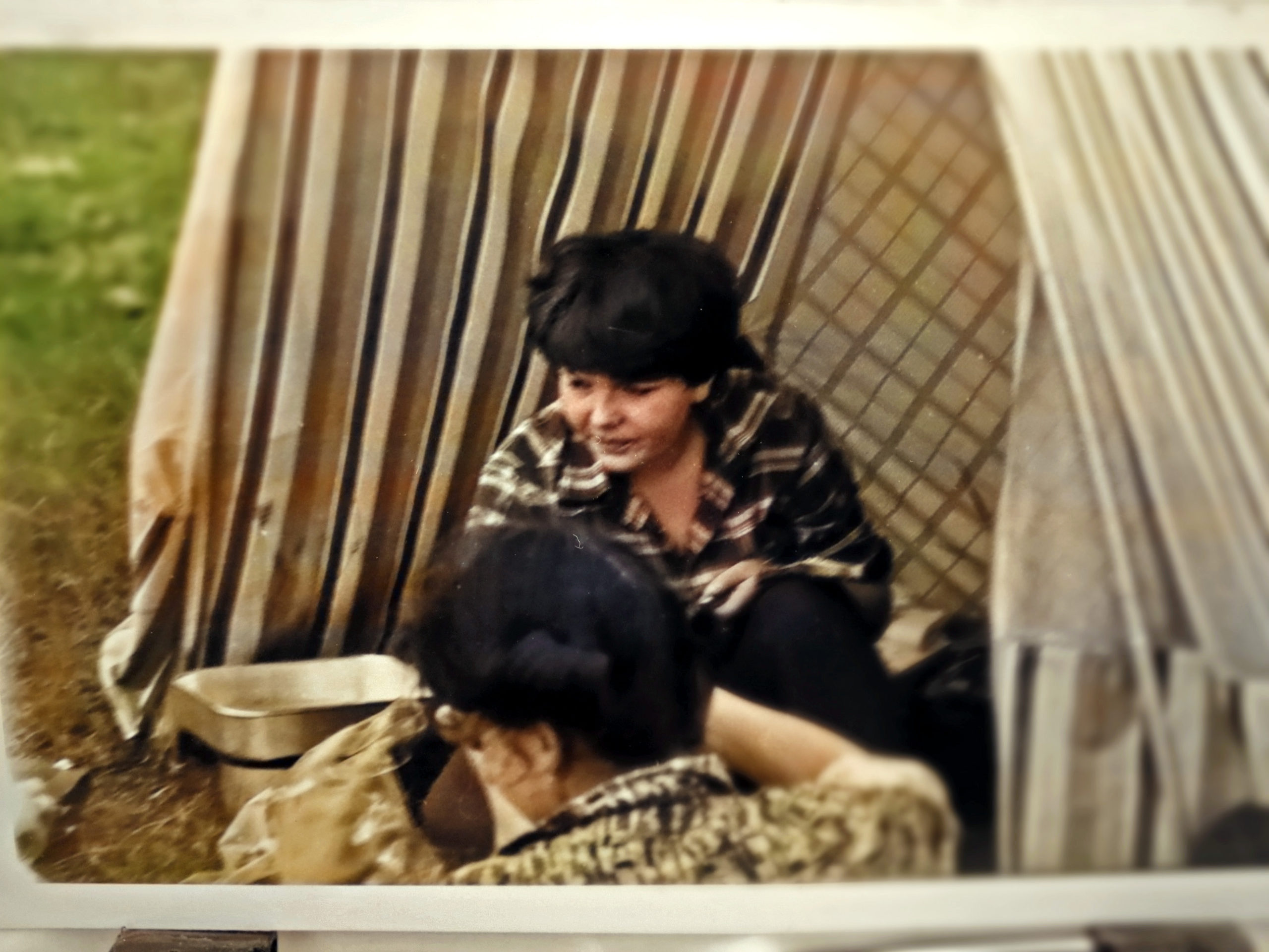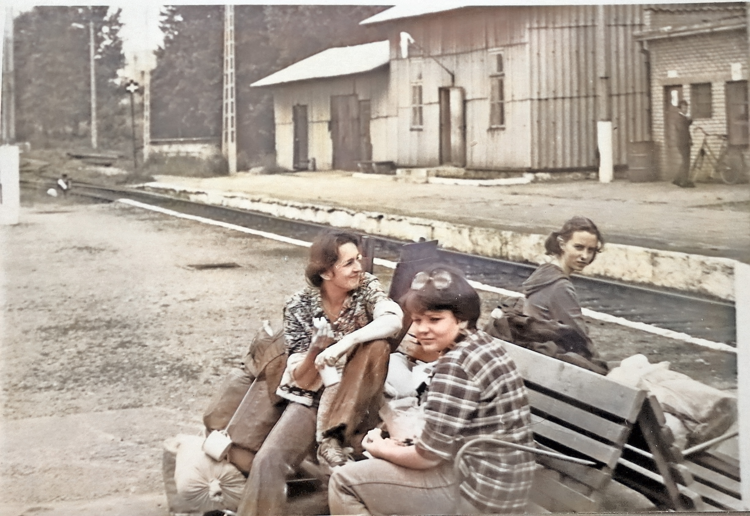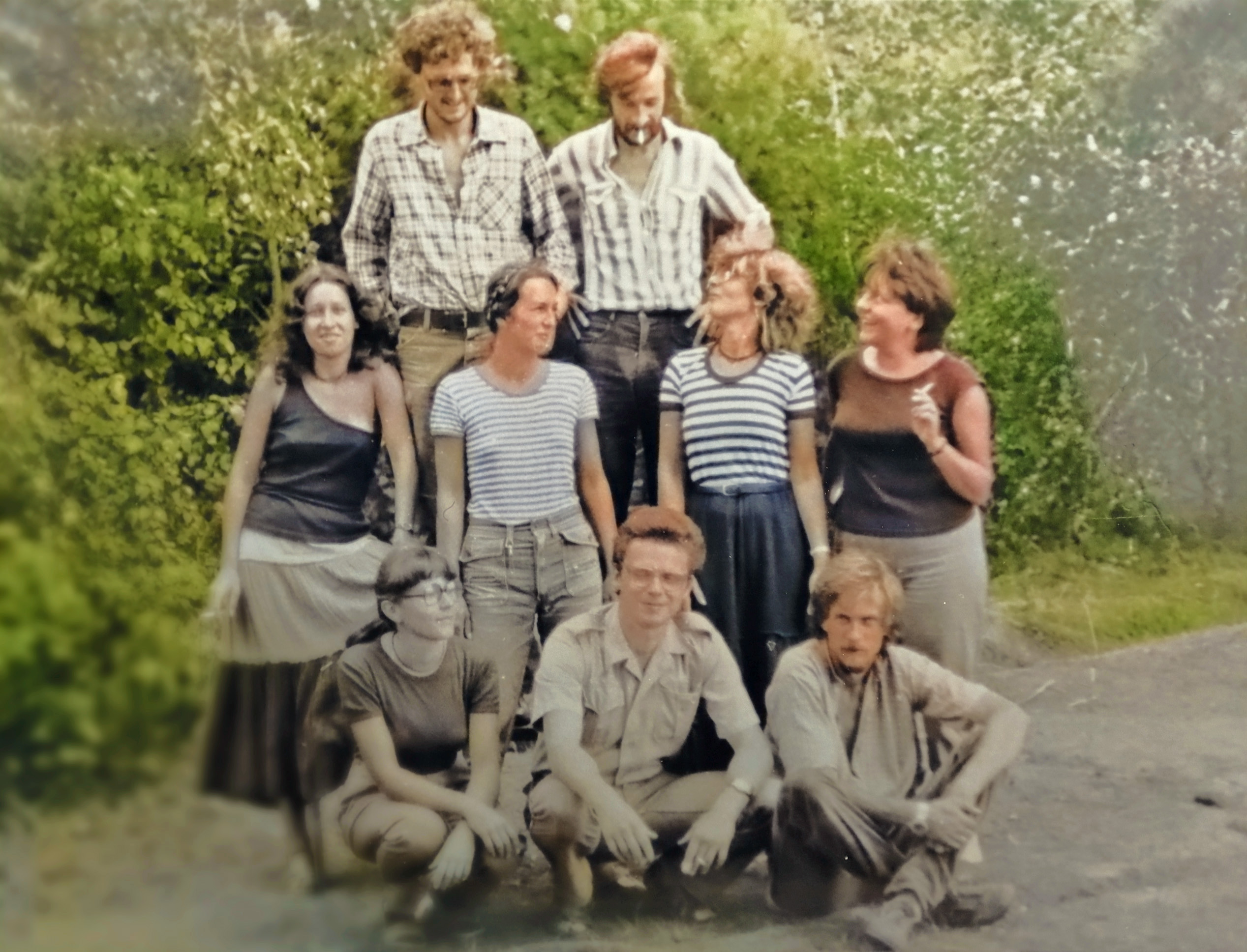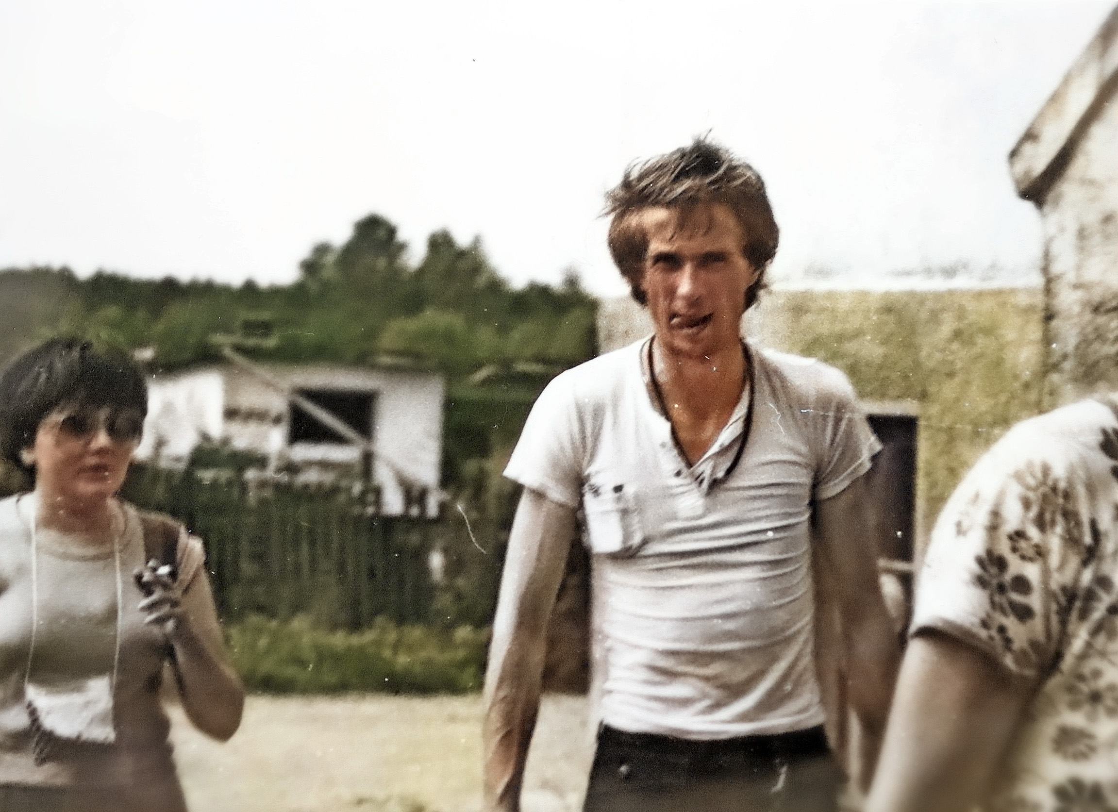 - 1981 jezioro Dłużek Wacek opowiada dowcip, słuchają Smajk Ś, Anna W, Joanna -in future- Ś, Dorota L, Zofia -in future- i ja S