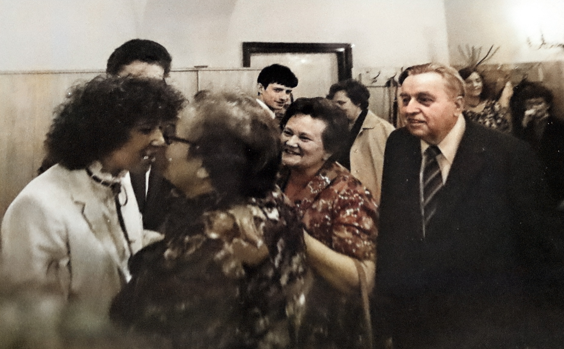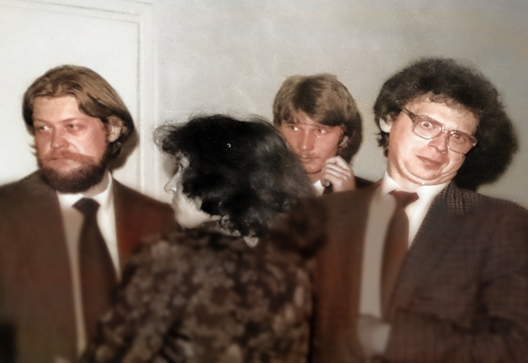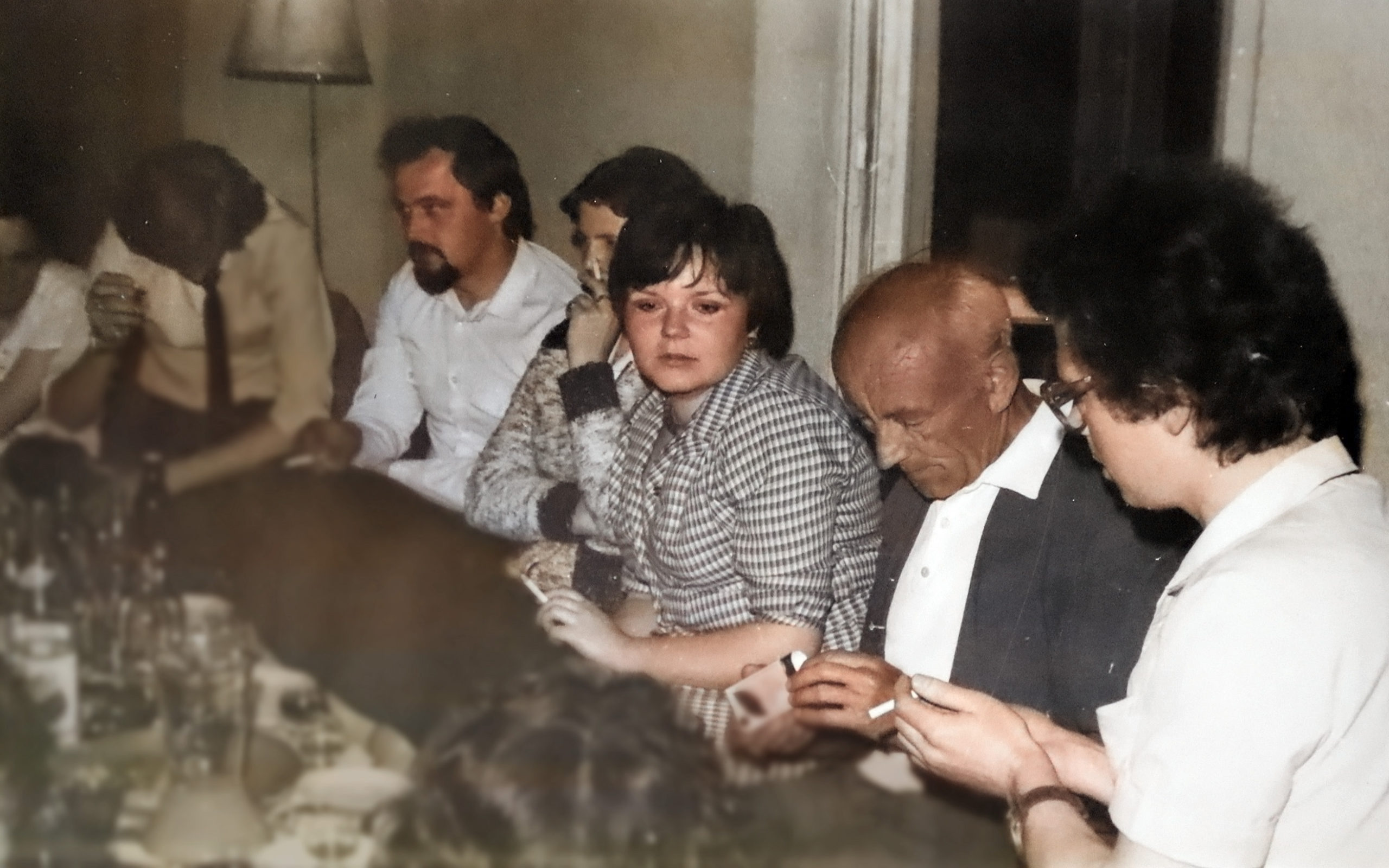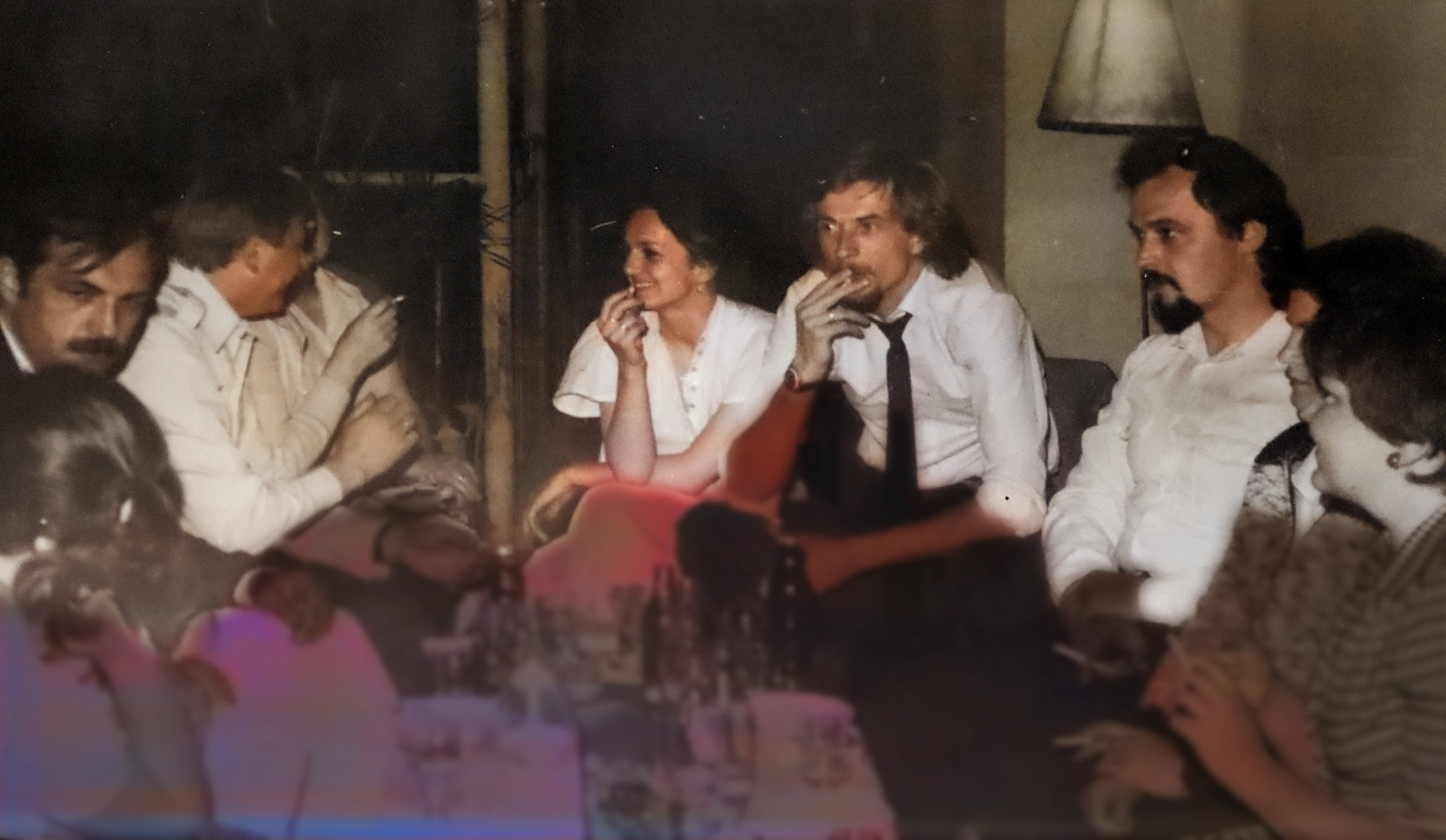 - 1982 Wieliczka u Wądolnych impreza, Anna Wądolny tyłem, Balasiński, Janusz Fekner, Wanda i Heniek Głąb, Mularczykowie, Zocha Wądolny