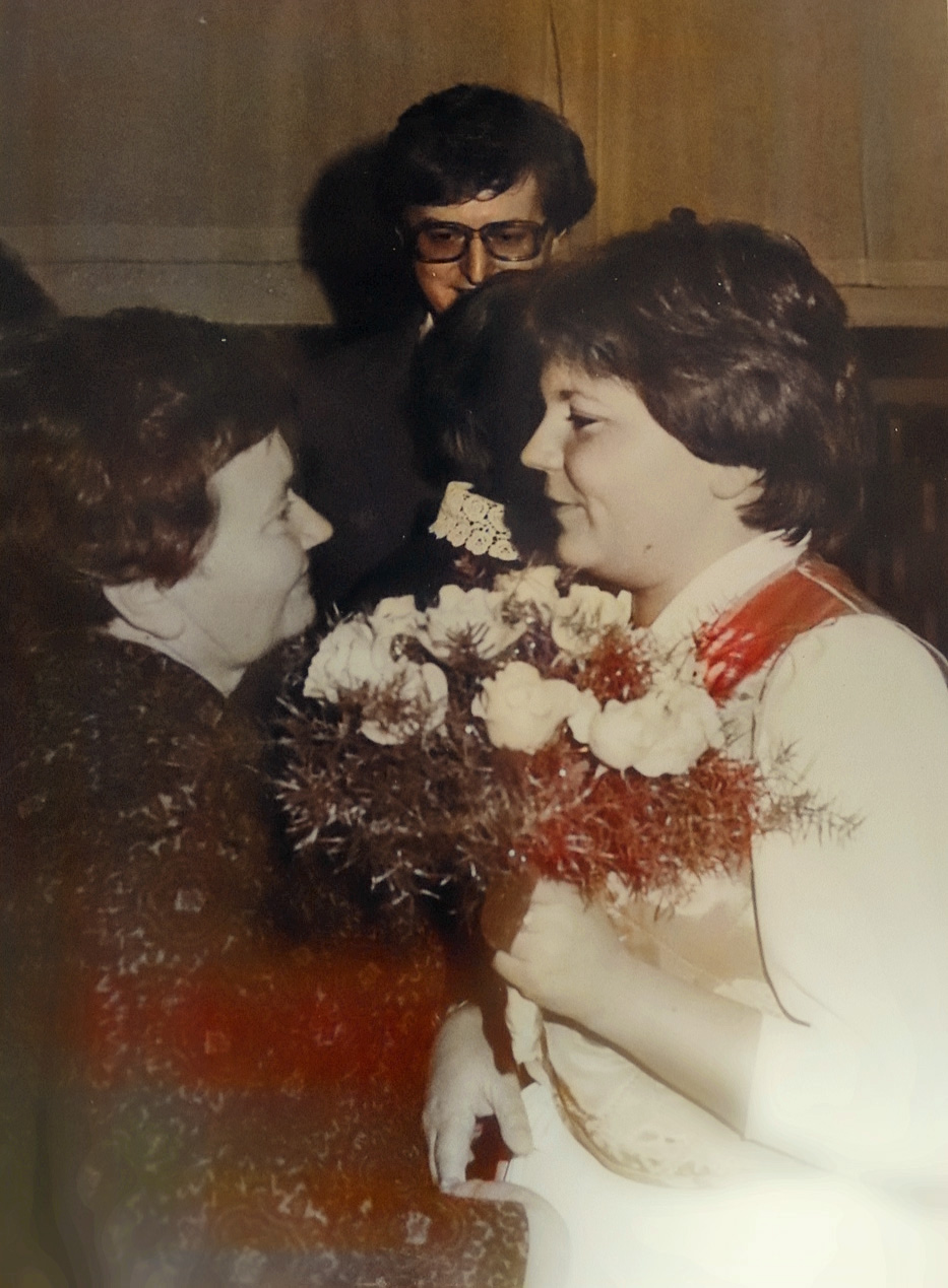 - 1983 wesele Wieliczka, Majka Zębala, świeża małżonka Zofia Skarbińska z Wądolnych, Stefan Skarbiński