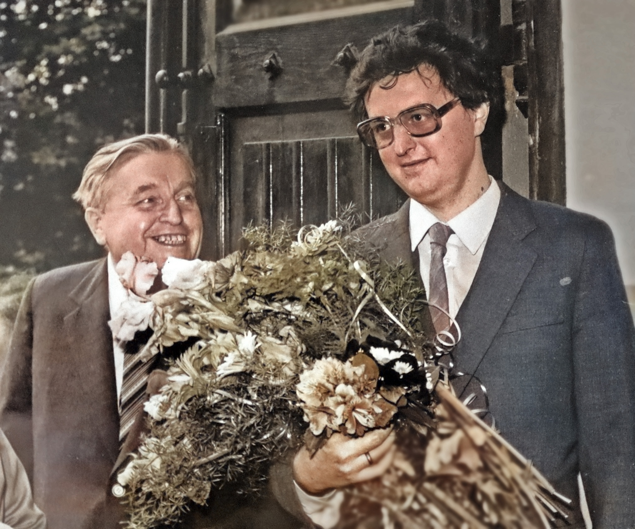 - 1982 i po chrzcinach, od lewej Marian Leszek Legeżyński i wykończony chrzestny – czyli ja, K. Skarbiński