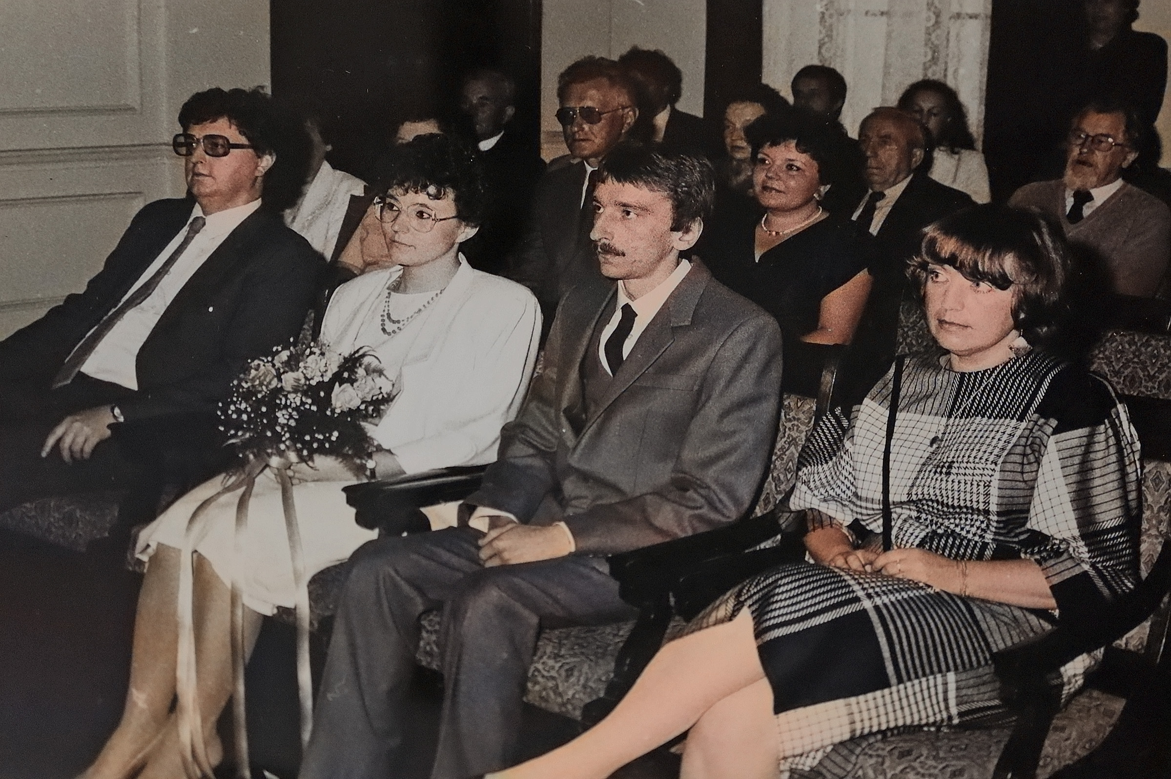 - 1987 ślub Anny Wądolny i Krzysztofa Lisowskiego, świadkowie ja – K. Skarbiński i Barbara Zębala, w tle ojciec K. Lisowskiego, Zofia Skarbińska, państwo Zębalowie, Pan Niedźwiecki